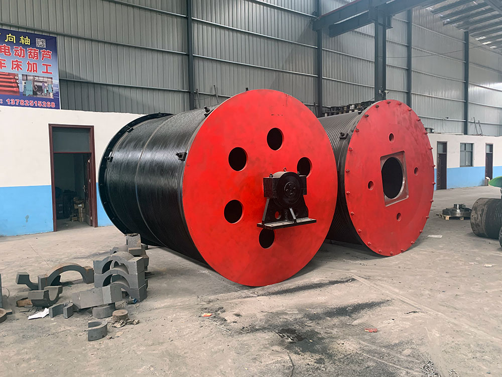 如果起升高度較大的時(shí)候,為了縮小卷筒的尺寸,可采用表面帶導(dǎo)向螺旋槽或光滑的卷筒進(jìn)行多層卷繞,但鋼絲繩磨損較快,適用于慢速和工作類型較輕,噸位較低的起重機(jī)。鋼板卷筒組則主要適用于大噸位、性能要求高的起重機(jī)械設(shè)備。